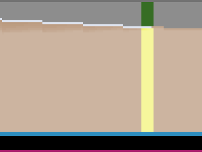 Main cross sectional view of the field Netlogo has rectangular patches. To model a slope, we have to use a stepwise approximation with these rectangular patches.