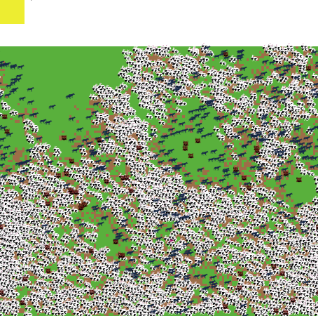 In addition to the animal trophic levels, this model simulates the producer level using green, or grass, patches. These are consumed by the second trophic level and "die" or turn brown. After a selected amount of time (ticks), the grass regrows and becomes green and edible again.