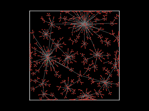 There are many ways to graphically display networks. This model uses a common "spring" method where the movement of a node at each time step is the net result of "spring" forces that pulls connected nodes together and repulsion forces that push all the nodes away from each other. This code is in the layout-step procedure. You can force this code to execute any time by pressing the REDO LAYOUT button, and pressing it again when you are happy with the layout.