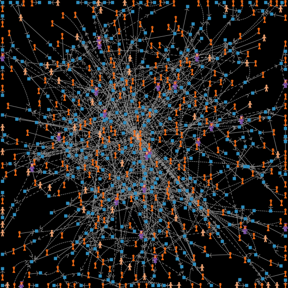 Для представления узлов м связей используются различные методы: * layout-spring * layout-radial