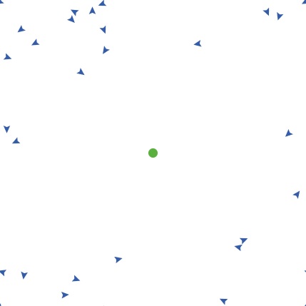 breed [drones drone] breed [targets target] drones-own [see_target signal at_site] targets-own [drones_here] to setup ca reset-ticks ask patches [ set pcolor white ] set-default-shape targets "circle" create-targets 1 ask patch max-pxcor max-pycor [sprout-drones num_drones] ask drones [ set color blue set see_target False set signal "Inactive" set at_site False move_around ] ask targets [ set color green ] end to go ; Each drone that is not at the target's site starts by scanning the environment within its sight range cone, ; if it sees the target, then, it changes the internal variable see_target from False to True ; if the communication is active then the drone activates the signal ask drones with [at_site = False] [ if any? targets in-cone sight_range amplitude_sight [ set see_target True if communication = True [set signal "Active"] ] ] ; If a drone that is not at the target's site sees the target, then, it implements the "seek" ; method of moving otherwise it implements the "wander method of moving ask drones with [at_site = False] [ifelse see_target = True [seek] [wander]] ; The target counts the drones that have arrived at its location ask target 0 [set drones_here count drones-here] ; Plot the number of drones that have arrived at the target do_plot tick ; If all the drones have arrived stop the game if [drones_here] of target 0 = num_drones [stop] end to wander ; Wander is the method for drones who do not have the target in sight ; When the communication is set to active... ifelse communication = True ;... then if there are any drones with an active signal ; move to the place of one of these drones, otherwise move around [ ifelse any? drones with [signal = "Active"] [ move-to one-of drones with [signal = "Active"] ] [ move_around ] ] ; When the communication is not set to active, the drone moves around [ move_around ] end to move_around ; Move randomly on the world to search for the target ; future versions will change this method rt random 180 fd max_step end to seek ; The seek method expresses the seeking behavior where ; the drone has found the target location and moves to the target move-to target 0 end to do_plot set-current-plot "Number of Drones on Target" plot [drones_here] of target 0 end
