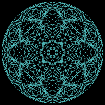 to setup clear-all set-default-shape turtles "dot" create-turtles modulo ask turtles [ set size 0 ] layout-circle sort turtles max-pxcor ask turtles [ let parner (who * mult mod modulo) if who != parner [create-link-with turtle parner] ask links [ set color cyan ] ] end